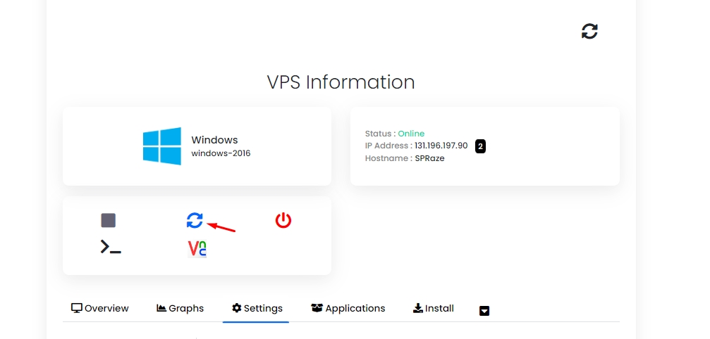 4. Após isso, reinicie sua VPS. Aguarde a reinicialização. E pronto, sua senha foi alterada. Qualquer problema, contate o suporte.